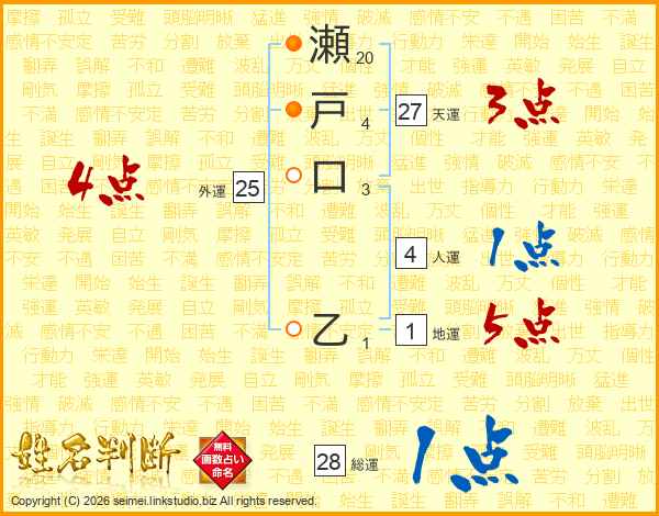 瀬戸口乙さんの総運は28画の1点!