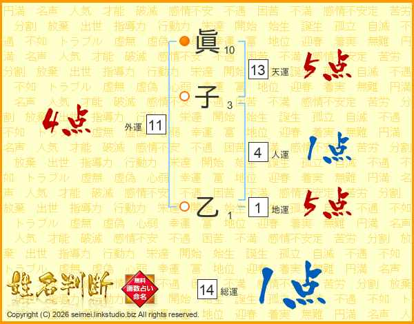 眞子乙さんの総運は14画の1点!