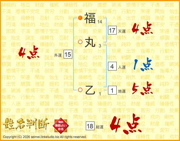 福丸乙さんの総運は18画の4点!