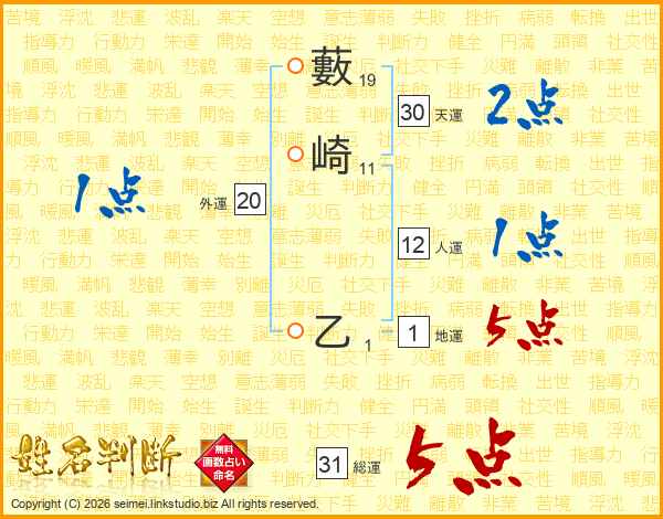 藪崎乙さんの総運は31画の5点!