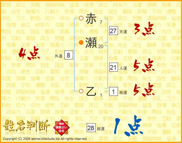 赤瀬乙さんの天運は27画の3点!