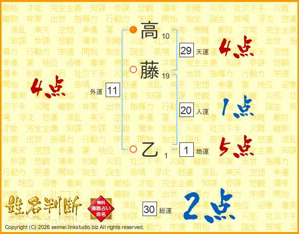 高藤乙さんの天運は29画の4点!