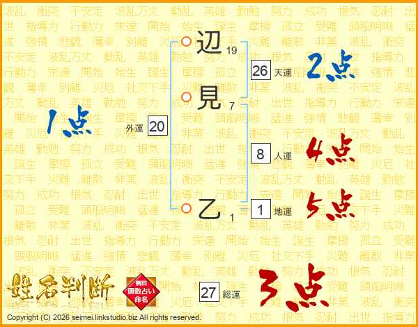 辺見乙さんの地運は1画の5点!