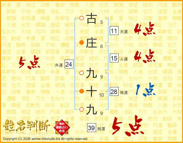 古(5画)庄(6画) 九(9画)十(10画)九(9画)