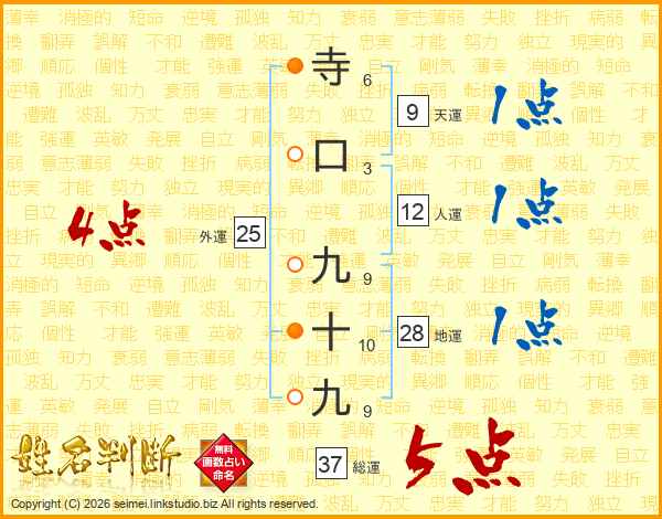 寺(6画)口(3画) 九(9画)十(10画)九(9画)