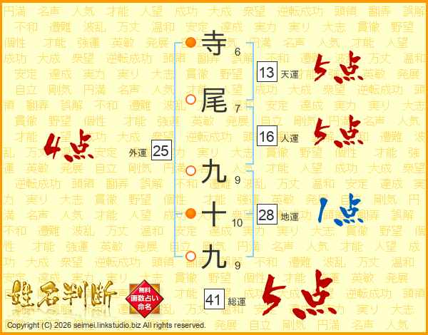 寺尾九十九さんの総運は41画の5点!