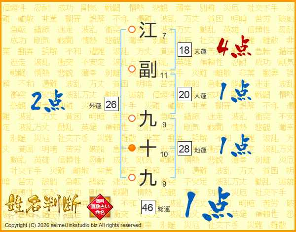 江副九十九さんの総運は46画の1点!