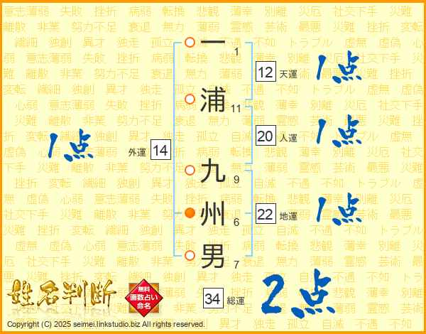 一(1画)浦(11画) 九(9画)州(6画)男(7画)