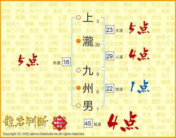 上(3画)瀧(20画) 九(9画)州(6画)男(7画)