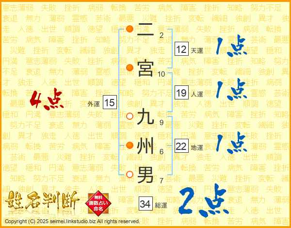 二(2画)宮(10画) 九(9画)州(6画)男(7画)