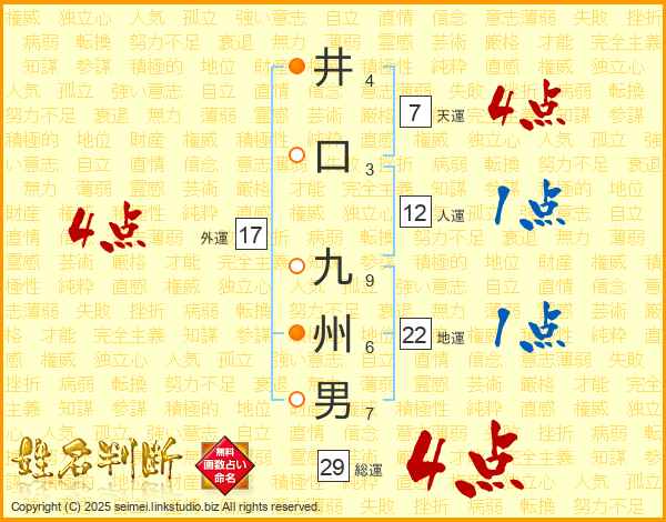 井(4画)口(3画) 九(9画)州(6画)男(7画)
