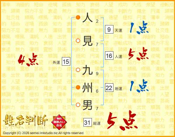 人(2画)見(7画) 九(9画)州(6画)男(7画)