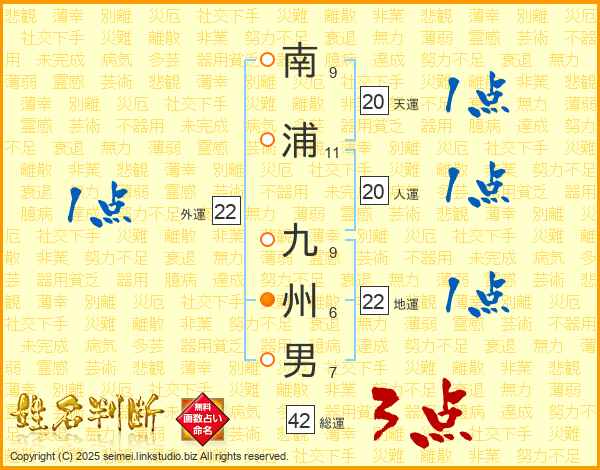 南浦九州男さんの地運は22画の1点!