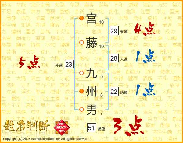 宮(10画)藤(19画) 九(9画)州(6画)男(7画)