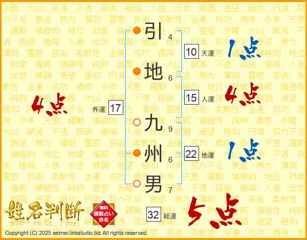 引地九州男さんの総運は32画の5点!