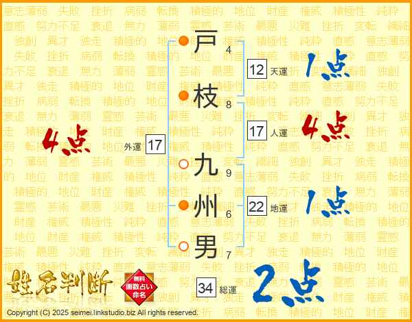 戸(4画)枝(8画) 九(9画)州(6画)男(7画)