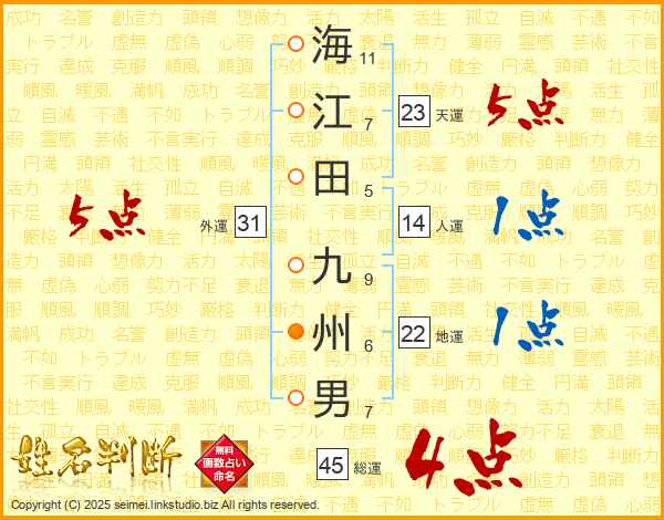 海江田九州男さんの総運は45画の4点!