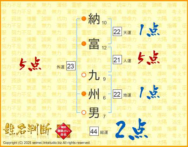 納富九州男さんの総運は44画の2点!