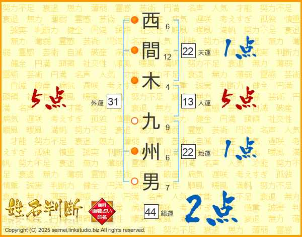 西間木九州男さんの総運は44画の2点!
