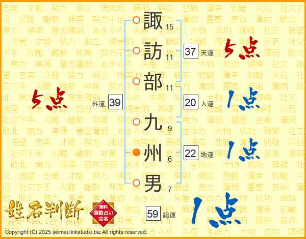 諏訪部九州男さんの総運は59画の1点!