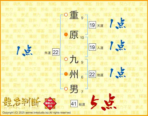 重(9画)原(10画) 九(9画)州(6画)男(7画)