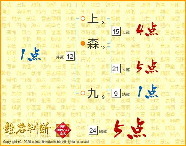 上森九さんの総運は24画の5点!