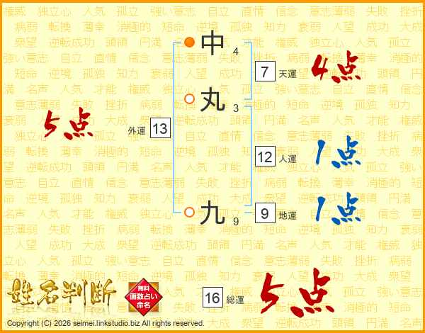 中丸九さんの総運は16画の5点!