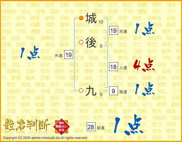 城後九さんの天運は19画の1点!