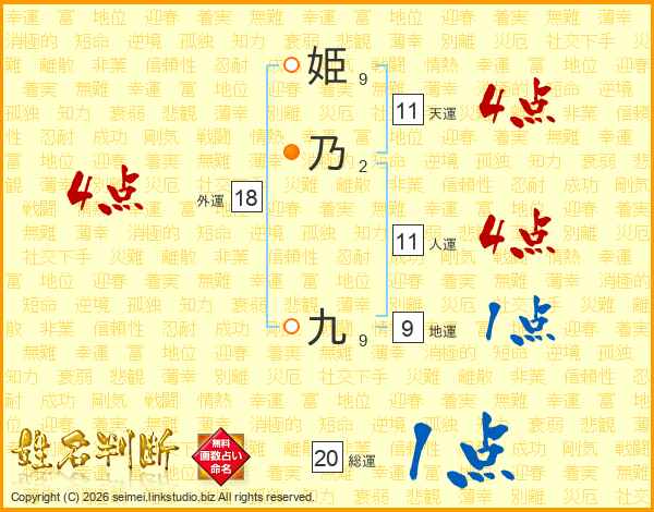 姫乃九さんの外運は18画の4点!