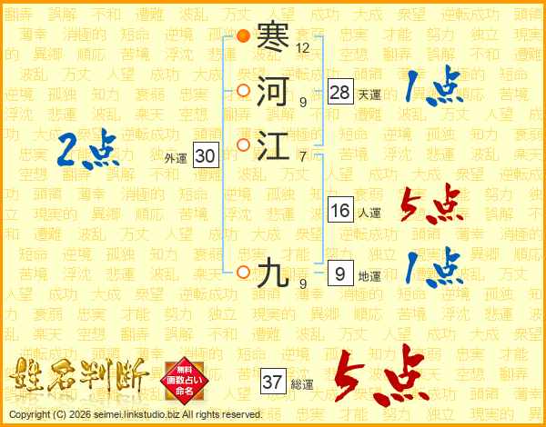 寒河江九さんの総運は37画の5点!
