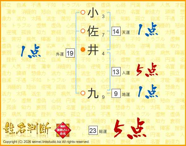 小佐井九さんの総運は23画の5点!