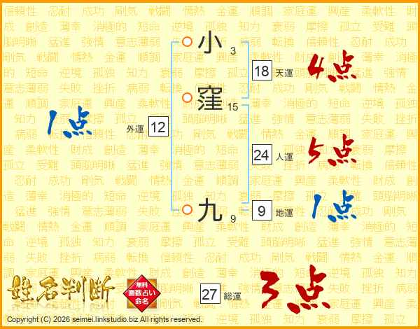 小窪九さんの人運は24画の5点!