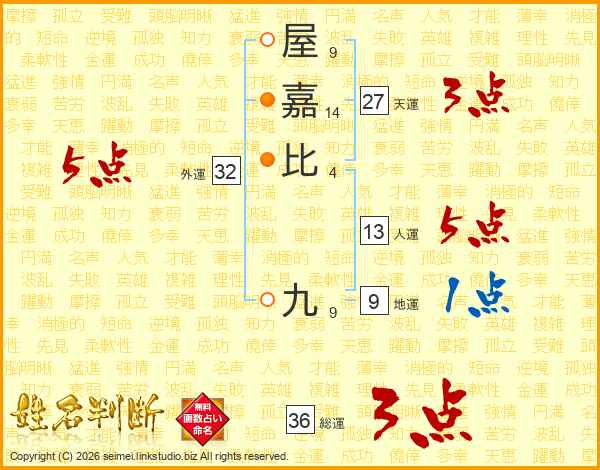 屋嘉比九さんの外運は32画の5点!