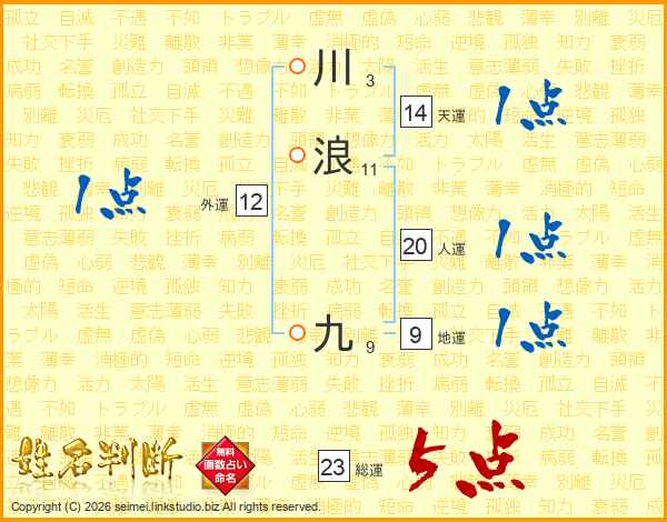 川浪九さんの総運は23画の5点!