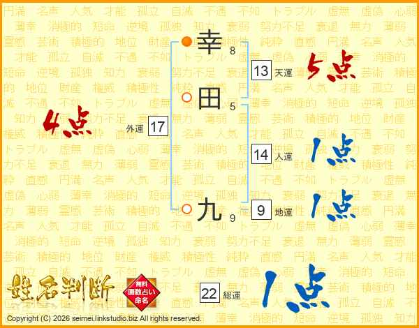 幸田九さんの人運は14画の1点!