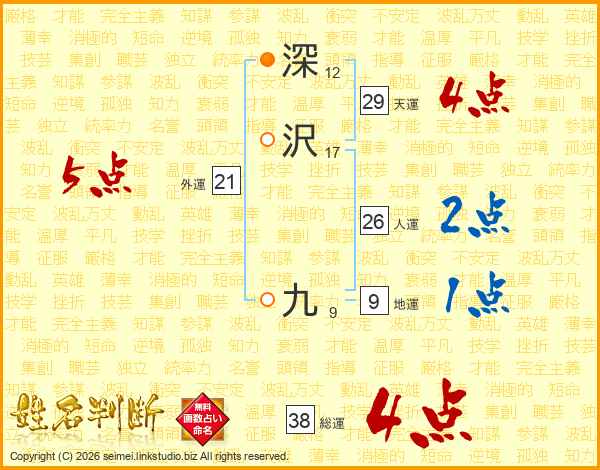 深沢九さんの総運は38画の4点!