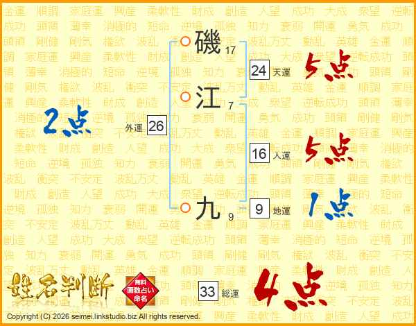 磯江九さんの総運は33画の4点!