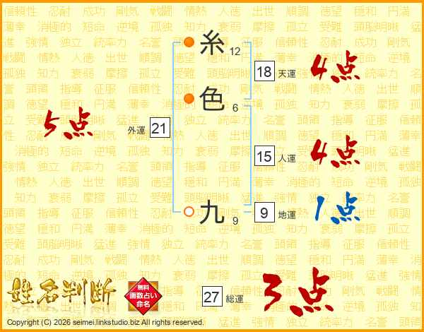 糸色九さんの総運は27画の3点!