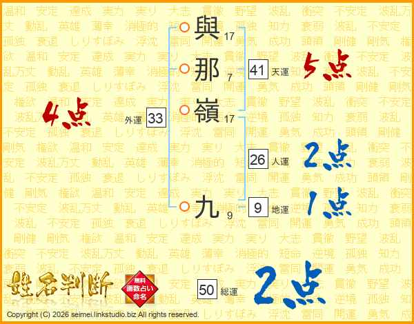 與那嶺九さんの総運は50画の2点!
