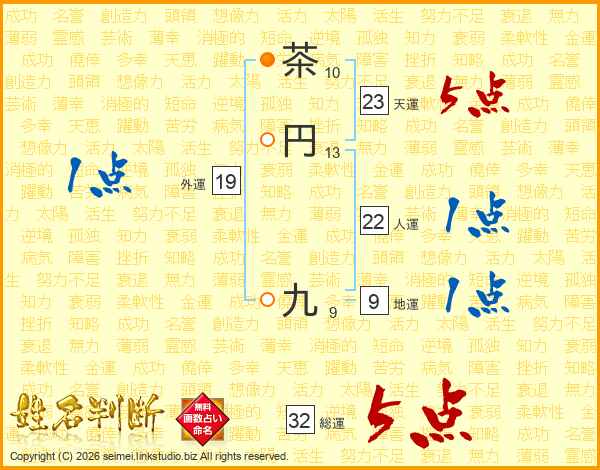 茶円九さんの総運は32画の5点!