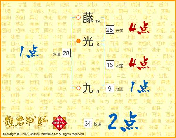 家系が持つ宿命的な運勢を表します。祖先から受け継いだ苗字ですので自分の力が及びません。家柄を象徴します。苗字の合計画数。