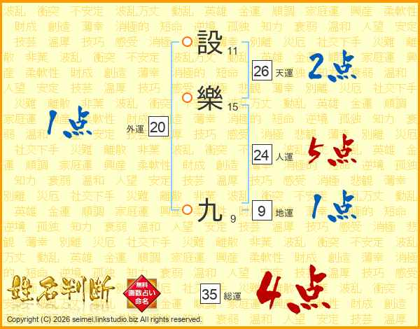 設樂九さんの総運は35画の4点!