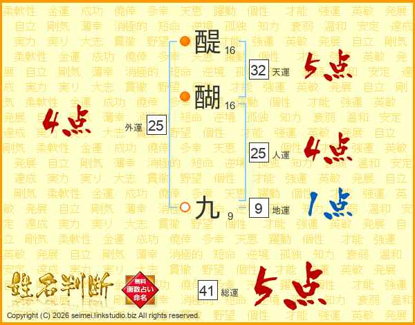 醍醐九さんの総運は41画の5点!