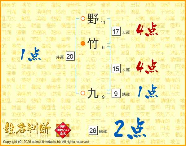 野竹九さんの総運は26画の2点!