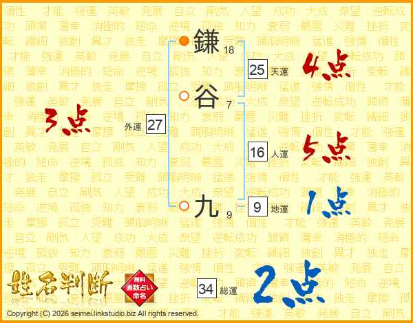 鎌谷九さんの総運は34画の2点!