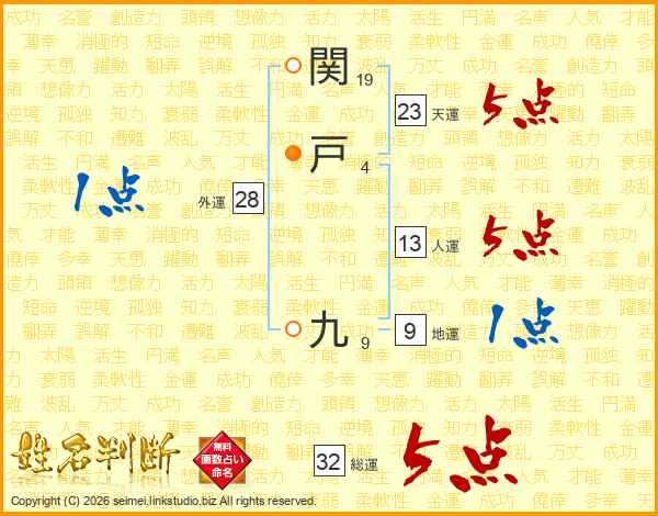 関戸九さんの総運は32画の5点!