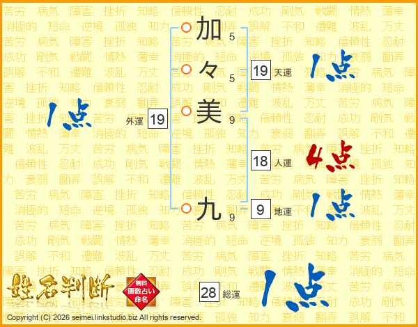 加々美九さんの総運は28画の1点!