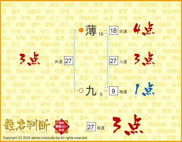 薄九さんの総運は27画の3点!