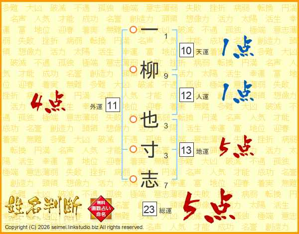 一柳也寸志さんの総運は23画の5点!