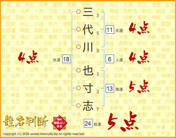 三代川也寸志さんの総運は24画の5点!